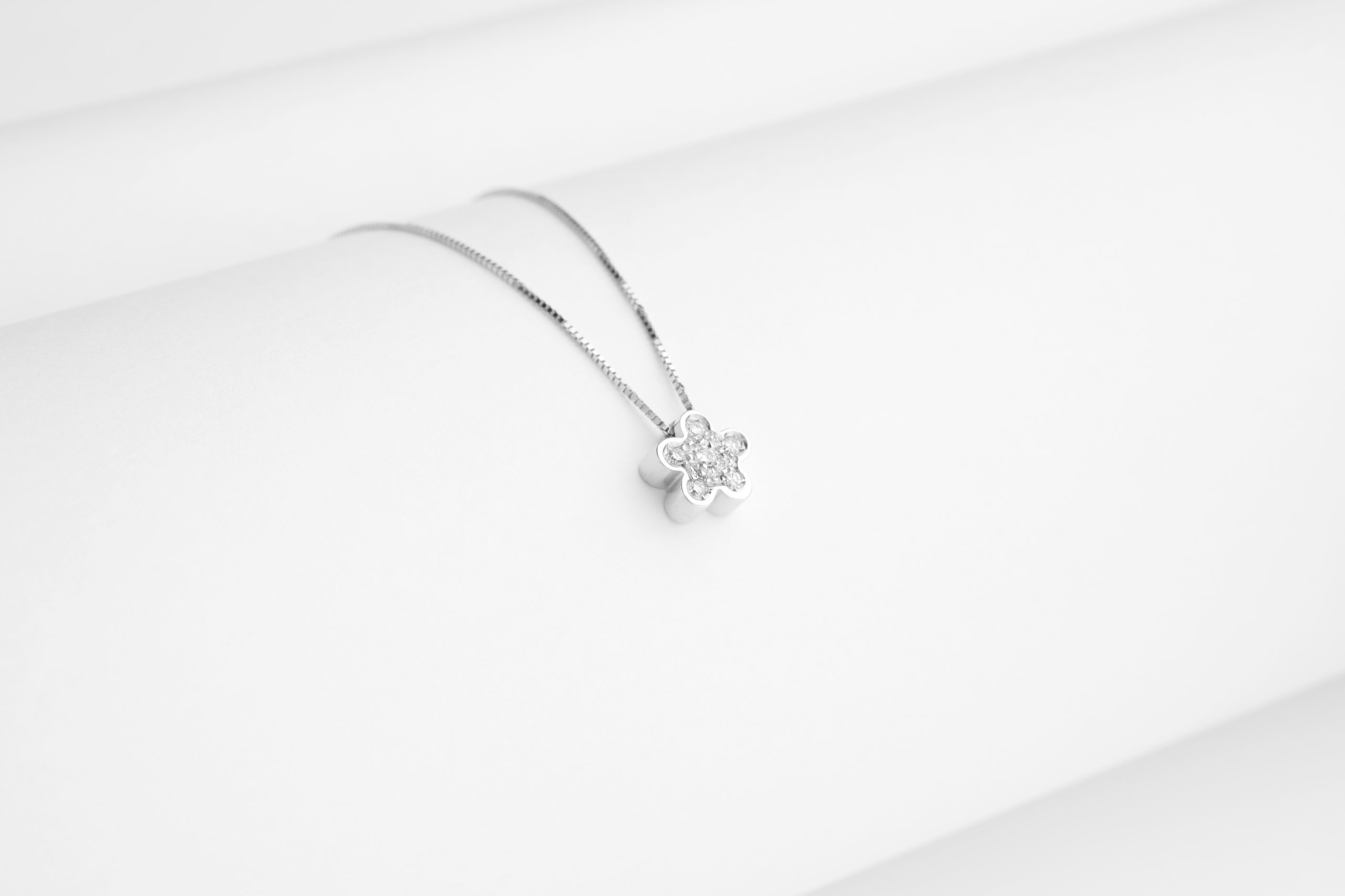 Collana in oro bianco 18kt a fiore e diamanti naturali taglio brillante